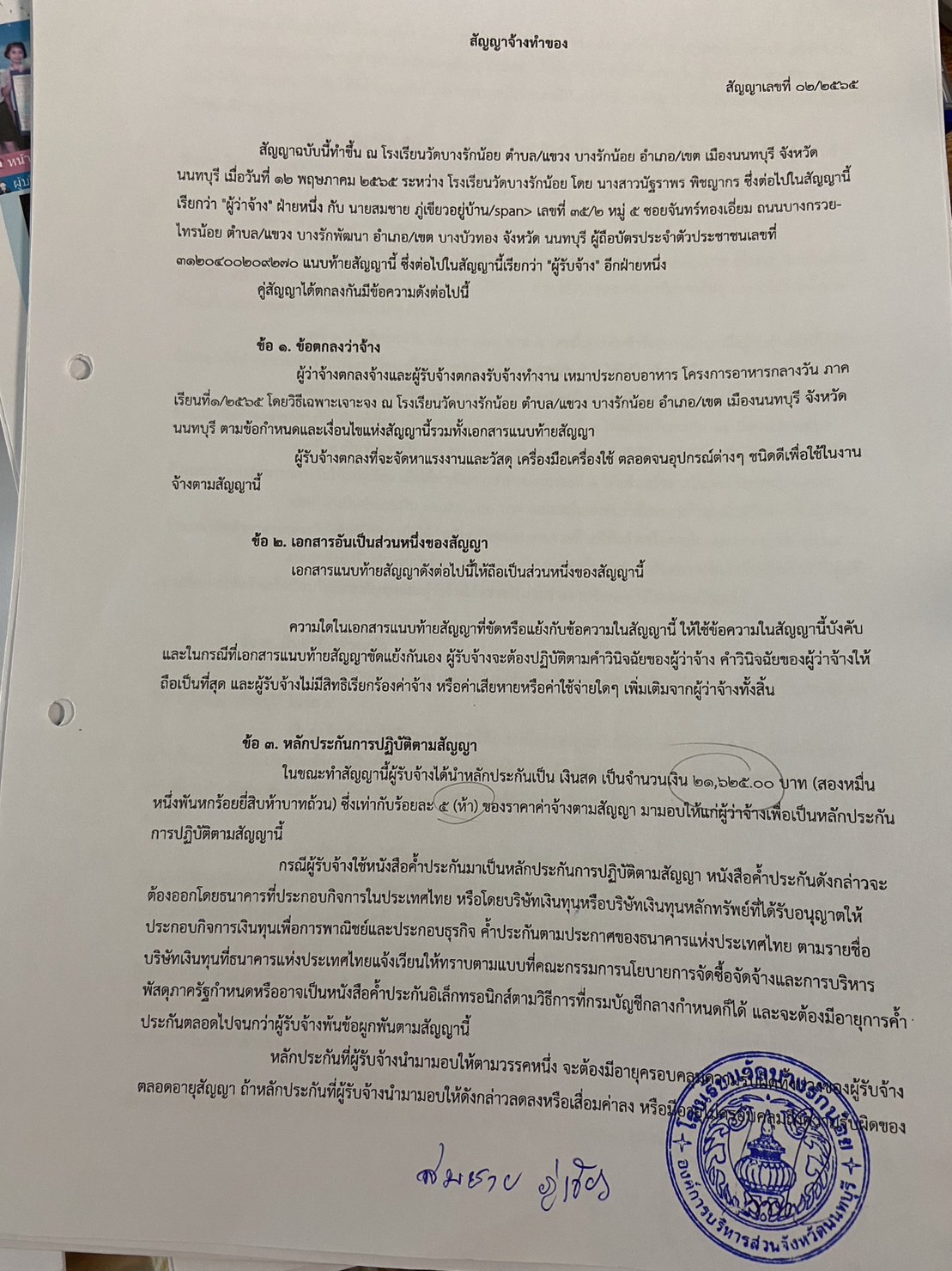 สัญญาจ้างทำของ เลขที่ 02/2565 จ้างเหมาประกอบอาหารกลางวันให้แก่นักเรียน ภาคเรียนที่ 1/2565 โครงการอาหารกลางวัน