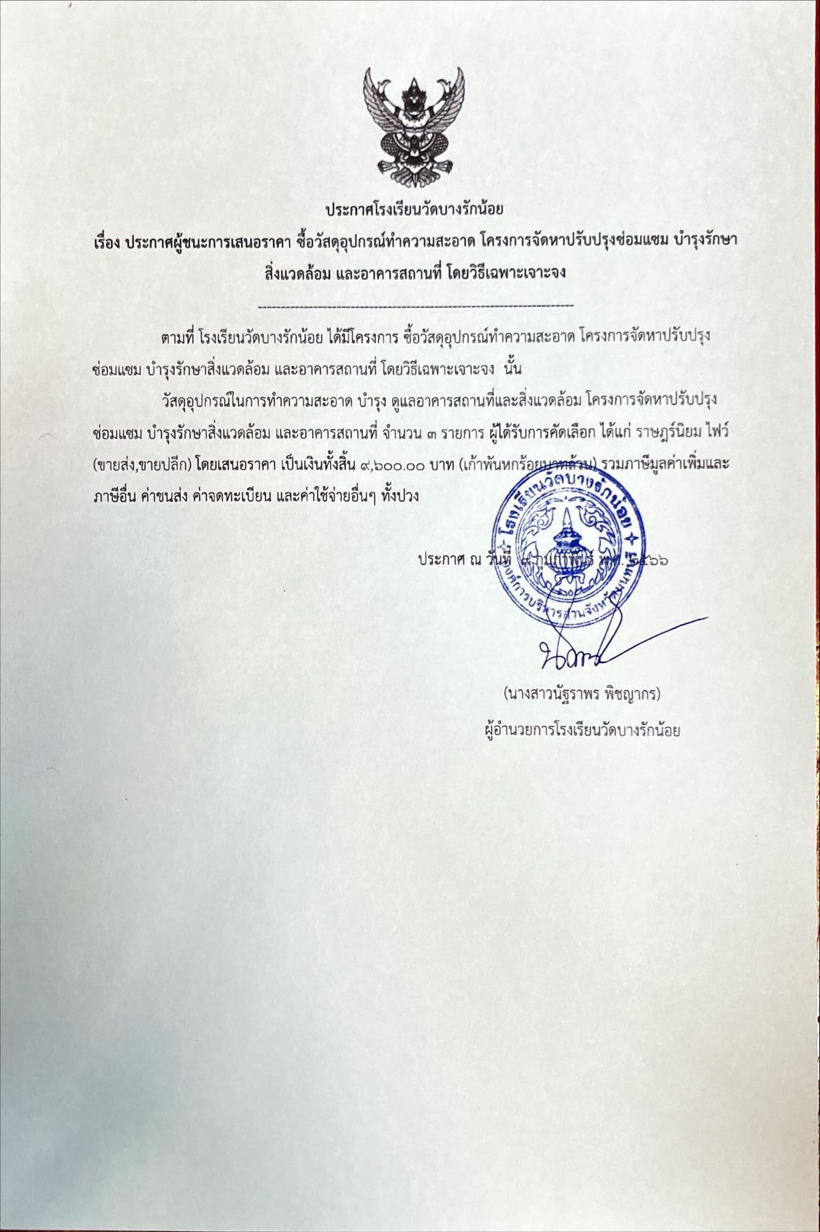 ประกาศผู้ชนะการเสนอราคา ซื้อสัสดุอุปกรณ์ทำความสะอาด โครงการจัดหาปรับปรุงซ่อมแซม บำรงรักษาสิ่งแวดล้อม และอาคารสถานที่ โดยวิธีเฉพาะเจาะจง